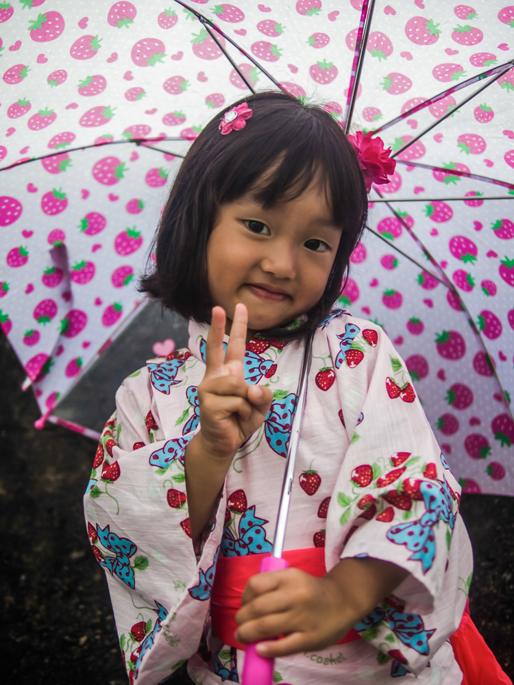 We’d only booked two nights in Shirahama, but fortune stayed on our side as we discovered that an annual fireworks display was being held on the second evening. Half the attendees were wearing traditional kimonos and yakutas and I couldn’t help but stop the young girl above for some shots of her strawberry ensemble.