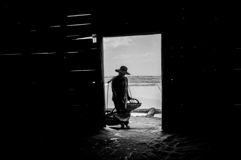 We also found ourselves invited onto other salt fields where we were allowed to shoot and even try our hand at carrying salt baskets from field to shed by a kindly mother of three. She and her daughter are among the proceeding images.
